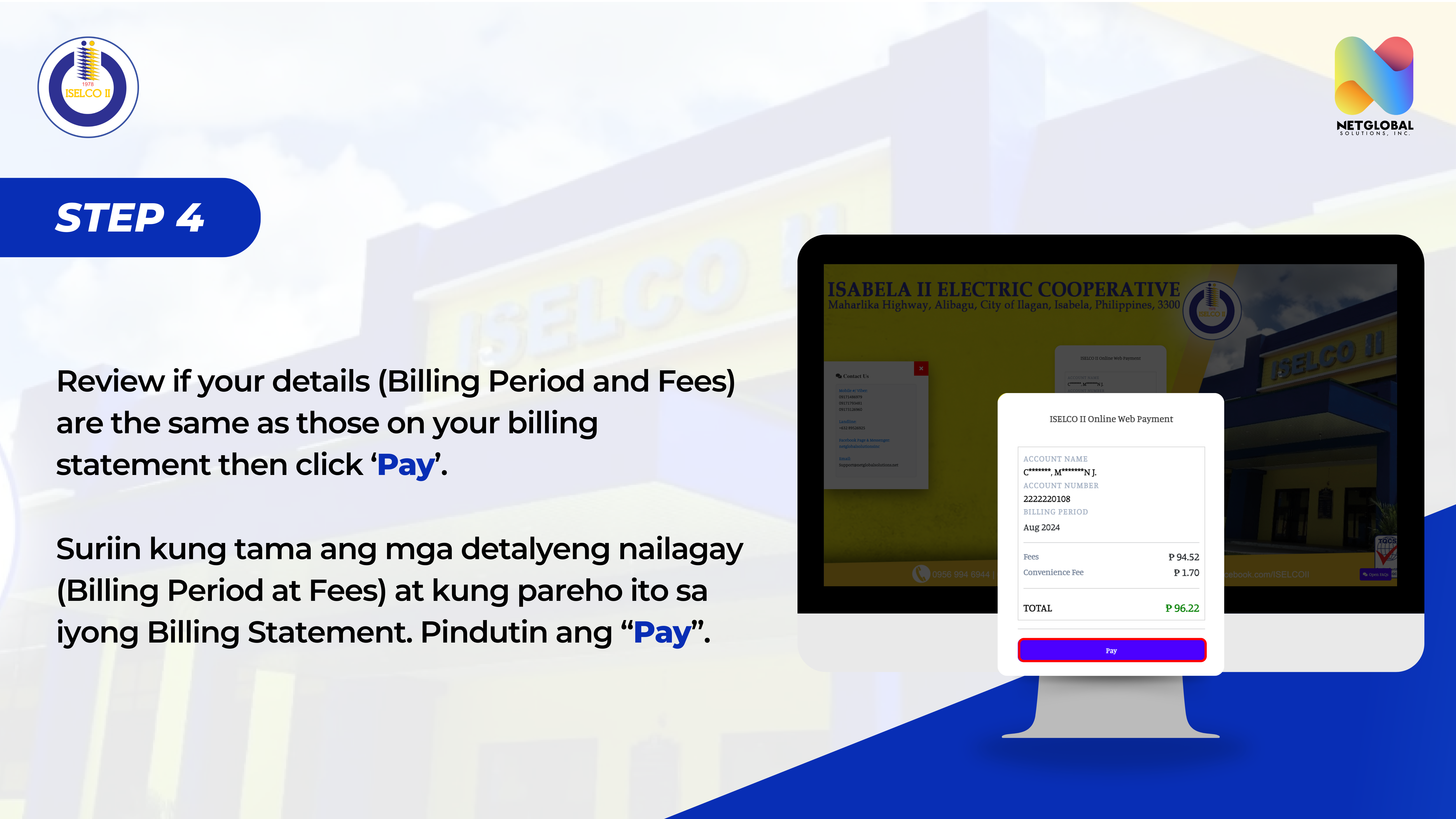 Hindi ka maaaaring makapagbayad online kung ang iyong account ay nakatanggap ng "Disconnection Letter". Kailangan mong magbayad sa pinakamalapit na branch ng ISELCO II.